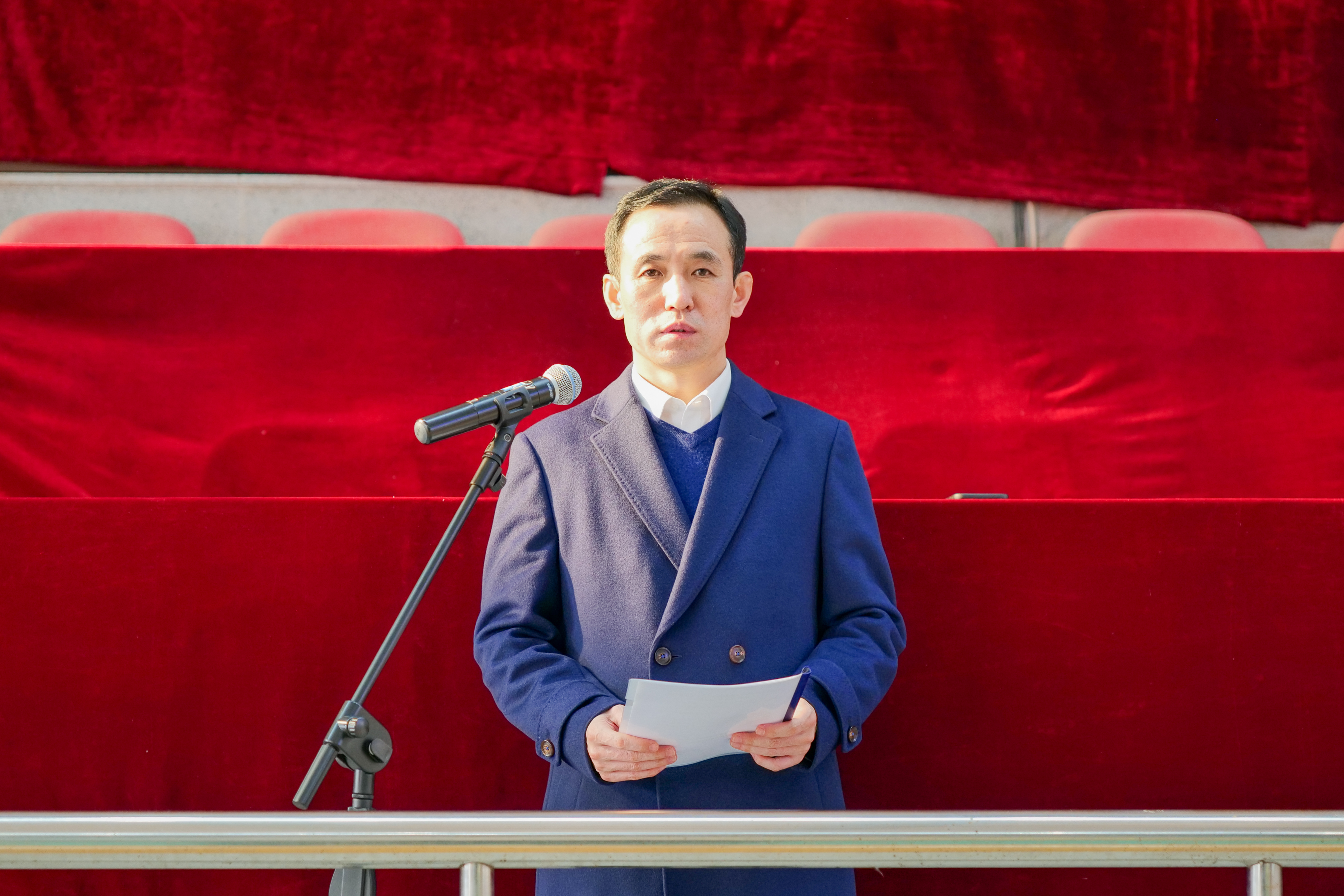 李晓科向赛事顺利启动表示热烈祝贺,向赛事筹备工作人员、志愿者及全体参赛队伍致以诚挚问候与欢迎。他指出,本次比赛创学校工会体育赛事参赛新纪录,15个分工会137名教职工踊跃参赛,这份积极踊跃,正是学校凝聚力的充分彰显。他提出三点希望,一是参赛队伍赛出风格和水平,展示斗志与风貌;二是裁判员坚守公平公正,规范执裁,保障赛事和谐有序;三是各分工会以比赛为契机,将赛场精神转化为教育教学动力和服务师生担当,为学校发展注入活力。